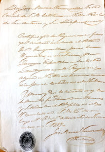 Y para que así lo acredite doy la presente firmada de mi mano y sellada con el Real Sello de este Vice-Consulado de S. M. C. de mi cargo en Villa Real de San Antonio a 13 de noviembre de 1827.