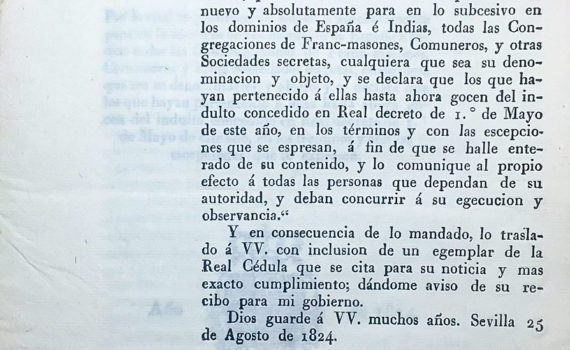 Archivo Municipal de Isla Cristina, Leg.84, Reales Cédulas prohibiendo sociedades secretas,1824-1827. En el […] Documento del mes Documento del mes: agosto de 2017