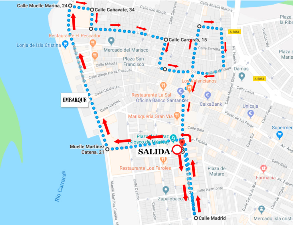 La procesión de Ntra. Sra. del Carmen será el próximo 16 de Julio con salida a las 19:30h desde la Parroquia Ntra. Sra. de los Dolores, se embarcará en el Barco Ze Rosa de D. José Manuel Mendez y el recorrido será el siguiente: