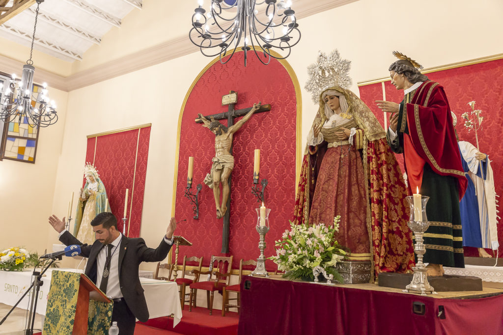 El hermano encargado de «tan alto honor», como llegó a declarar días previos, proviene de una familia muy arraigada a la hermandad y capataz del paso, Manuel Quintero, quien consiguió emocionar a todos los asistentes que llenaron las bancadas del templo y entre las que se encontraban, en representación del ayuntamiento, la Primera Teniente de Alcalde, Isabel López que estuvo acompañada del Hermano Mayor de la Hermandad, Antonio Martín «Monete» y todo su Junta de Gobierno; el cura párroco titular del templo Francisco Miguel Valencia, así como miembros de la Corporación Municipal, el Presidente del Consejo de Hermandades, Javi Castro y parte de los miembros que lo componen y representantes de las principales hermandades y cofradías isleñas.