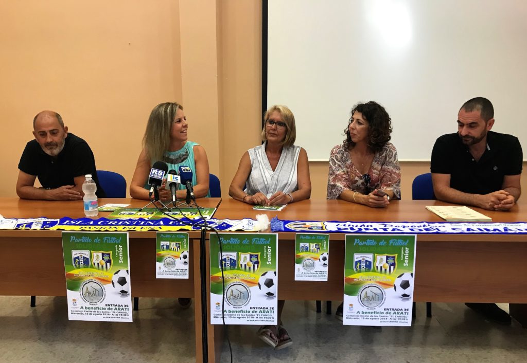 La presentación pública ante los medios de comunicación se ha llevado a cabo en la sede del centro y han asistido, además de Manuela Conde, en representación de ARATI; la alcaldesa, Monserrat Márquez; la Delegada de Deportes, Manuela Escobar y ambos presidentes, tanto Francisco Silva “Sarri” como José Antonio Munell “Caballa”, del Isla Cristina FC y UD Punta del Caimán respectivamente.