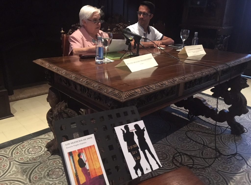 Cabe recordar que Encarnación Nogales estudió Magisterio y ejerció en la Enseñanza Pública durante treinta y ocho años. Su afición por la literatura se manifestó desde la infancia, escribiendo pequeños cuentos. Publicó conjuntamente con otros autores, en un volumen titulado “Calma Infinita” (editado por el Centro de Estudios Poéticos de Madrid) algunos de sus poemas. En 2011, la Diputación Provincial de Badajoz editó su primera novela “Los silencios de Dios”, una obra basada en la historia de un hombre que experimenta el latigazo del desprecio de muchos por su condición sexual que regresa a su pueblo después haber vivido en Paría durísimas experiencias. Una obra que aborda el dolor y el sufrimiento en sus distintas manifestaciones, pero también la amistad, la solidaridad o el perdón, entre otros valores como tabla de salvación.