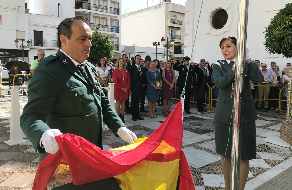 Tras la celebración de la misa, las autoridades civiles y militares se dirigieron a la Plaza de la Paz, aneja al templo, donde tuvo lugar la izada de una bandera española, mientras sonaron los himnos nacional y el de la Benemérita.