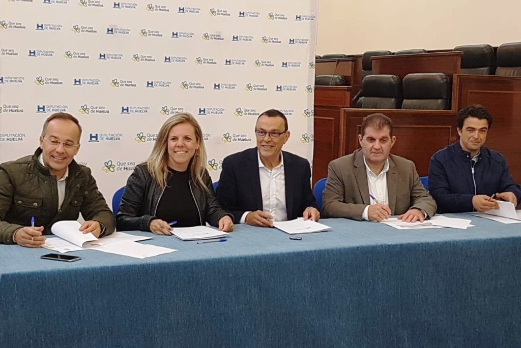 El Salón de Plenos de la institución provincial ha acogido, durante la mañana de hoy, la firma de un convenio de colaboración entre la Diputación Provincial de Huelva y los municipios de la provincia con el objetivo de financiar los materiales de las obras acogidos al Programa de Fomento de Empleo Agrario 2018 (PFEA).