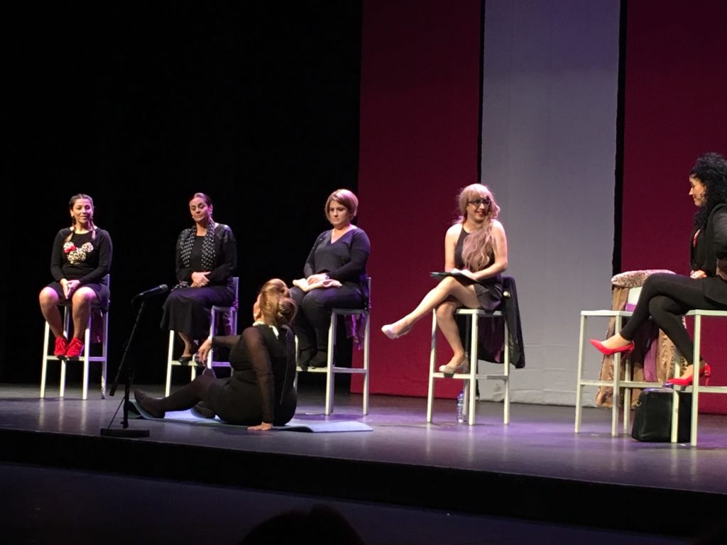 La noche finalizaba con la representación de la obra de Teatro “Reflexiones sobre la vagina y otras historias políticamente in-correctas”, protagonizada por un grupo de actrices, voluntarias de la Asociación “Resurrección” La obra, dirigida por Pedro Martín, recogía una mezcla de diferentes testimonios en clave cómica, dramática y sensual, donde la mujer adquiere un papel relevante. A través de diferentes entrevistas a las protagonistas, los actores plasmaron cómo la mujer se empodera y toma las riendas de su vida en un contexto social desigual.