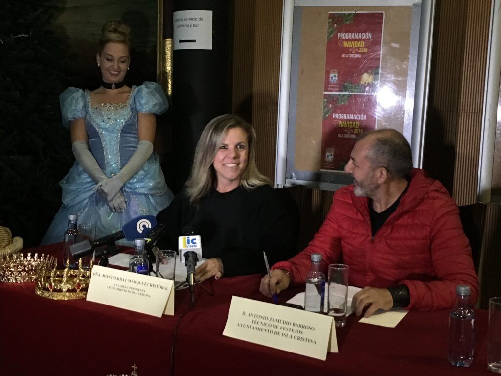 Isla Cristina 5 de Diciembre de 2018.- El Ayuntamiento de Isla Cristina presentaba ayer la programación diseñada para estas fiestas navideñas, en un acto organizado en el Hall del Teatro Municipal Horacio Noguera presidido por la Alcaldesa de la localidad costera, Montserrat Márquez quien dirige a su vez la Delegación de Festejos a quien acompañaba el técnico del Área, Antonio Zamudio.