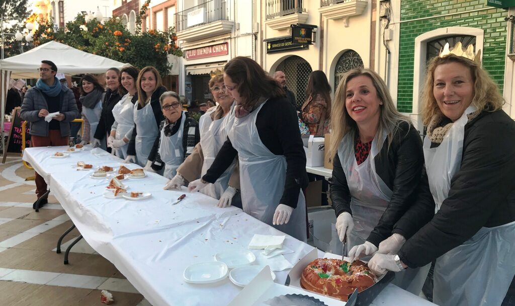 Desde las cinco de la tarde, isleños e isleñas de diferentes barriadas de la localidad han podido degustar, de forma gratuita, diferentes Roscones de Reyes que ha surtido el ayuntamiento, en colaboración con Mercadona y Supermercados El Jamón.