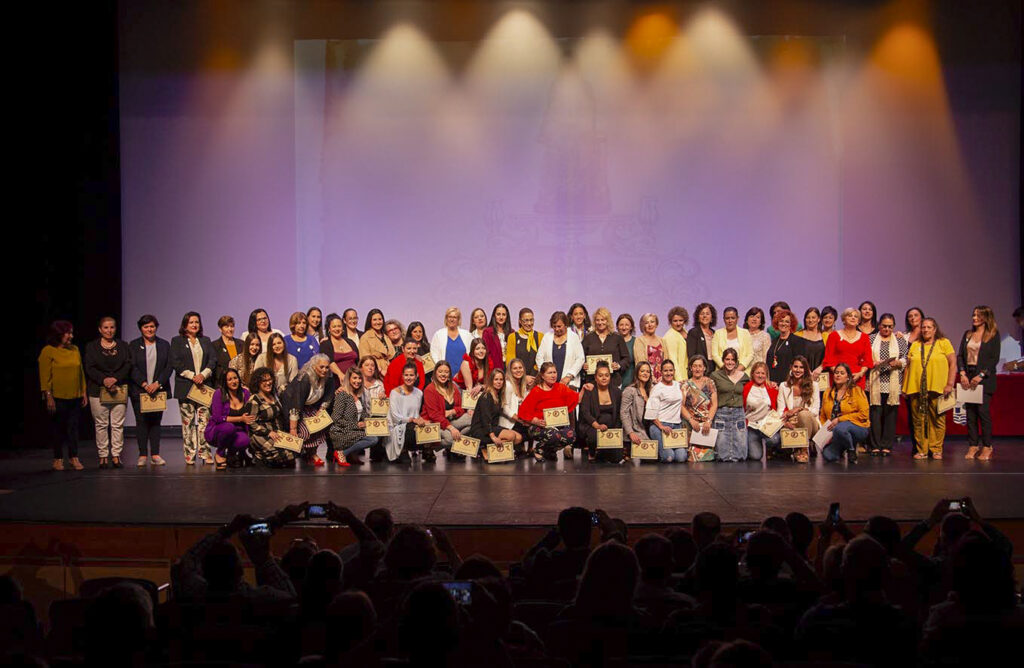 También se rindió homenaje a los cinco capataces que han pasado por la Hermandad, para finalmente nombrar y agradecer a todas y cada una de las mujeres que, en algún momento de su historia, han cargado con la imagen. Un total de 239 costaleras, algunas de las cuales no pudieron estar presentes por residir fuera de la localidad, entre otros motivos. Cada una de ellas fue recogiendo un diploma conmemorativo para terminar reunidas en el escenario en una gran foto de familia.