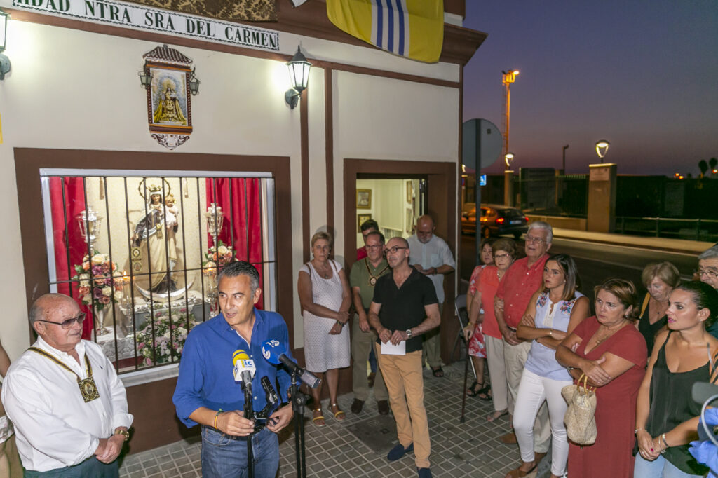 En Isla Cristina a 22 de Agosto de 2019.- La Casa-Hermandad de la Virgen del Carmen de Isla Cristina estrenó anoche una pequeña y modesta capilla que acoge una imagen de la advocación que se puede ver desde el exterior gracias a un gran ventanal acristalado.