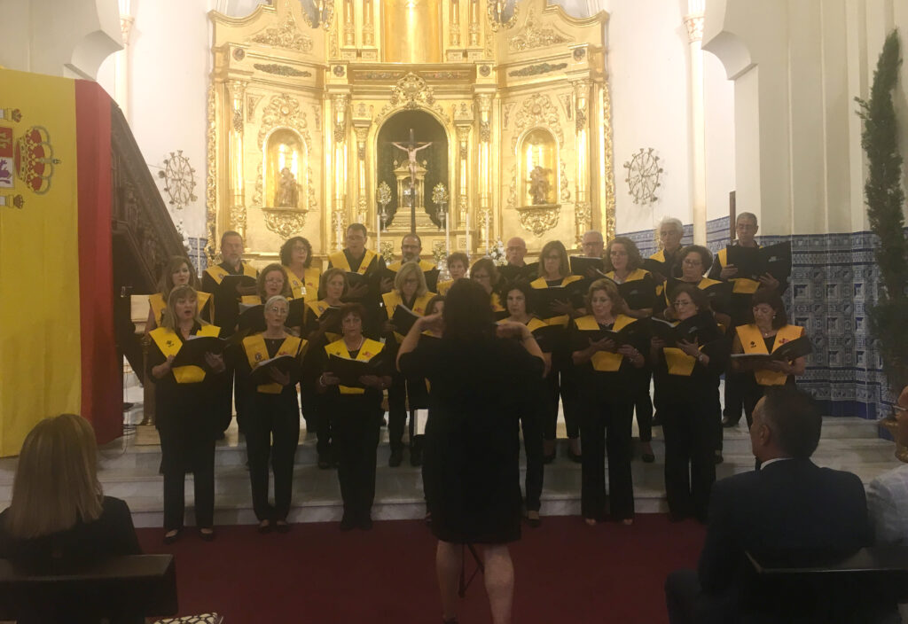 Cerraba esta segunda jornada del Festival la Coral Polifónica ‘Isla Cristina’, dirigida por Vicente Sanchís y Virginia Peña. Esta formación isleña volvía a sorprender con un excelente concierto con temas de Cobián; C. Amarelinho, S. Preux o Grever.