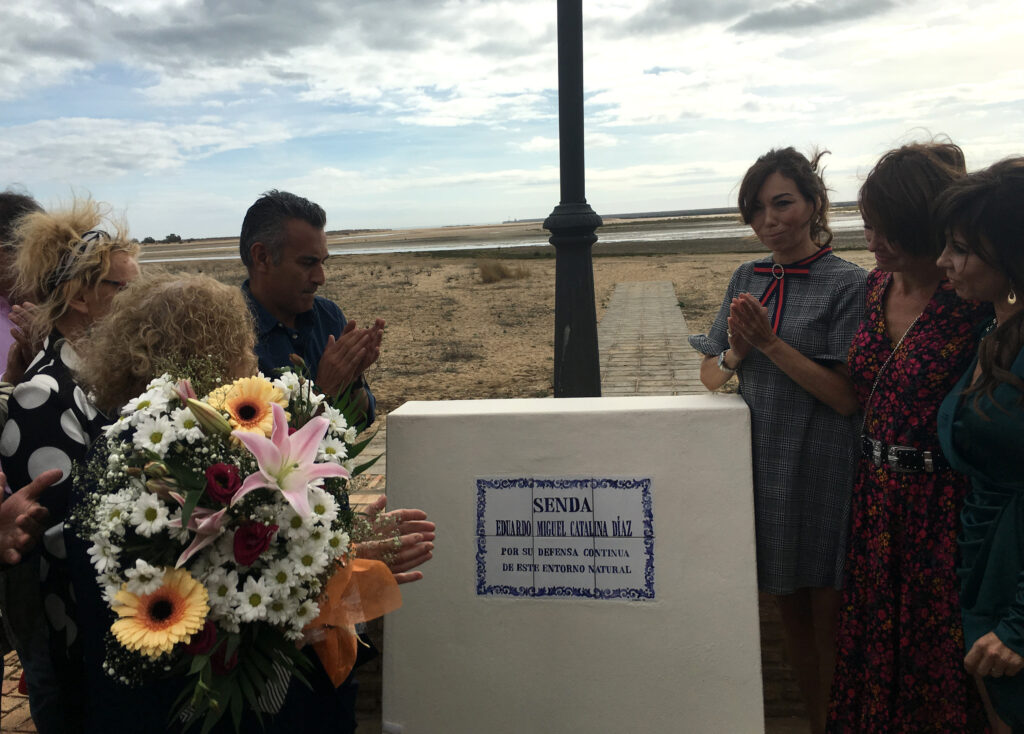 Así, pasado el mediodía, una amplia representación de la Corporación Municipal encabezada por el Alcalde de la localidad, Jenaro Orta y el Concejal delegado de Medio Ambiente y precursor de la propuesta, Fran Sosa, junto a familiares , vecinos y amigos, procedía al descubrimiento de, por un lado, un azulejo- monolito en homenaje Manuel Gómez, conocido cariñosamente por todos como Manolo ‘El Culón’, presente en el acto, y otro en Memoria de Eduardo Catalina, sevillano de nacimiento e isleño de adopción, tristemente fallecido hace ahora diez meses.