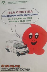 Este mes de julio el Centro de Donación y Transfusiones estará en Isla Cristina los días 6 y 7 de julio.