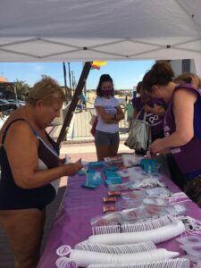 Isla Cristina a 18 de agosto de 2020.- La Playa Central de Isla Cristina ha albergado un estand informativo sobre la Violencia de Género en el que se ha repartido material al respecto con el objetivo de concienciar a la población sobre la tragedia que se esconde tras esta lacra social. Esta acción forma parte de la Campaña contra esta lacra social que pone en marcha cada año el Ayuntamiento de la localidad atendiendo al Pacto de Estado contra la Violencia de Género.