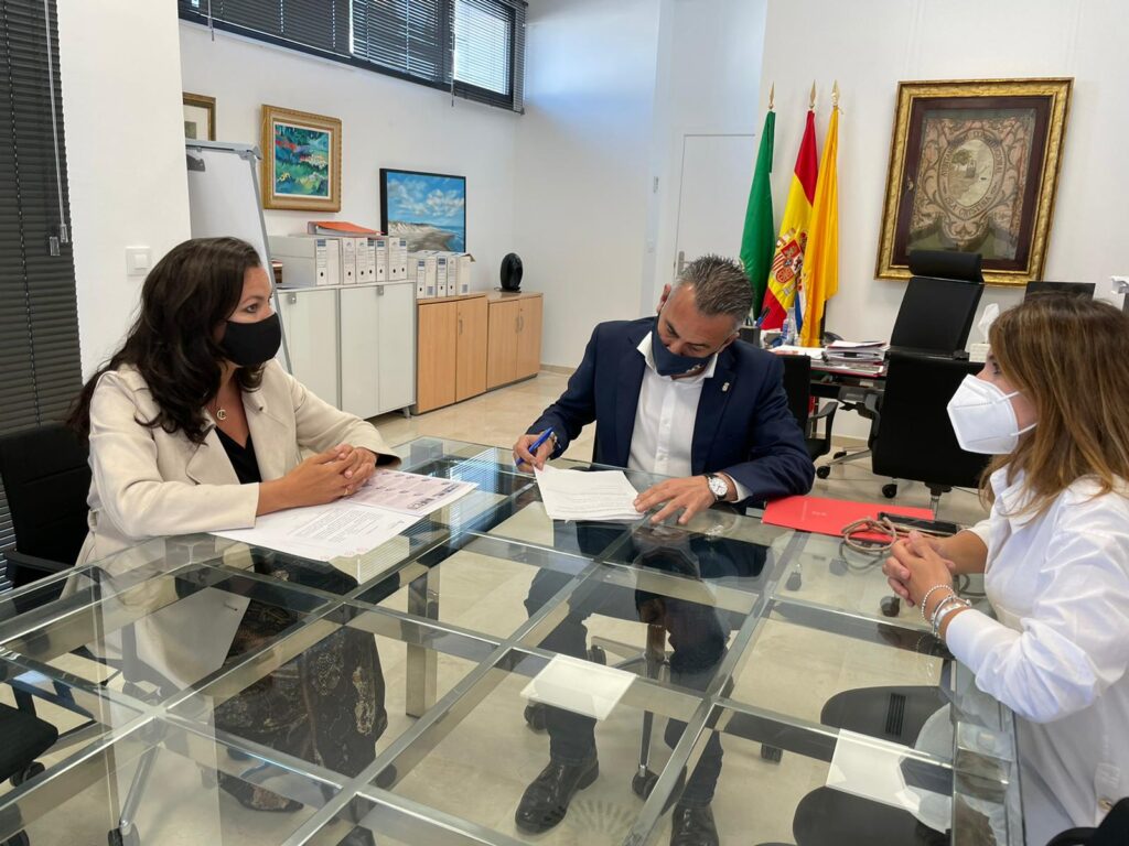 La asesora del programa del Instituto Andaluz de la Mujer en Huelva, María Martín mantiene un encuentro con el Alcalde de la localidad, Jenaro Orta y la Delegada Municipal del Área de la Mujer, Ana Vieira para dar visibilidad a la adhesión.