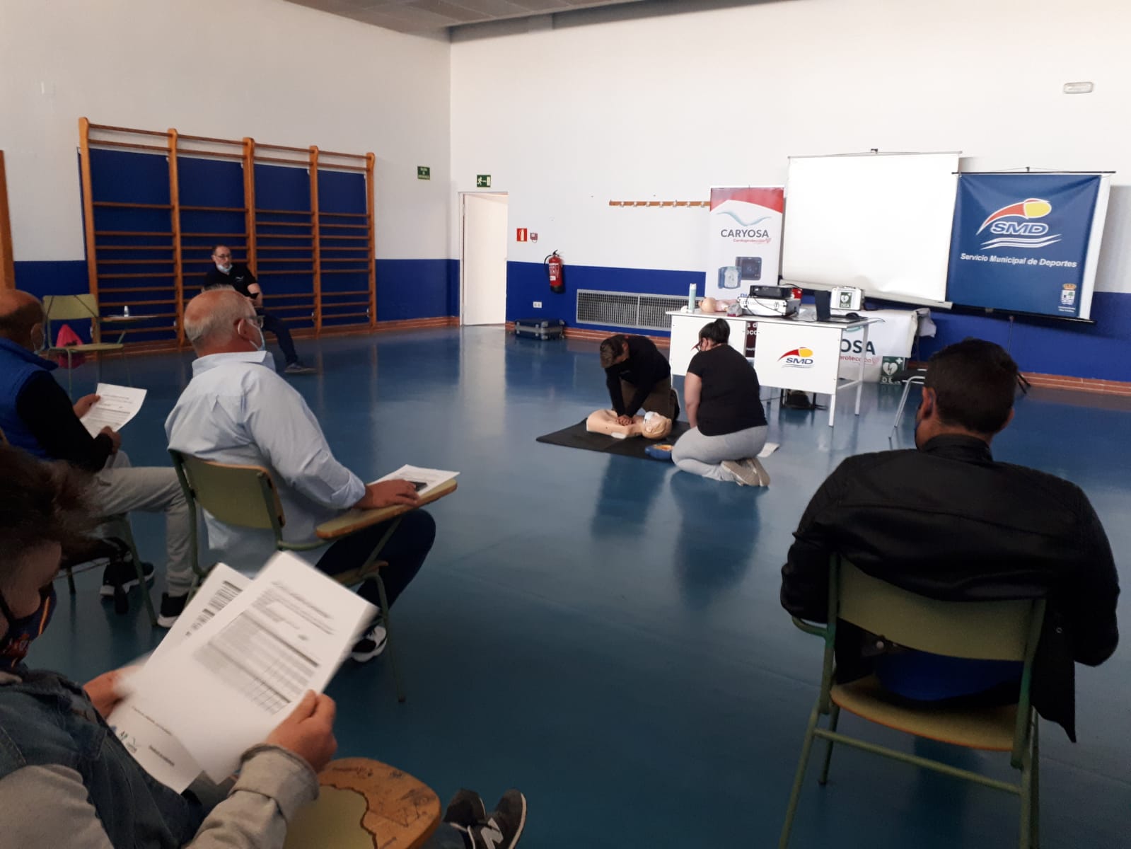 El material, ocho desfibriladores, fue presentado en la clausura del último de los ocho cursos que la empresa Caryosa, cuyo representante, Antonio Soto se encontraba presente en esta presentación, ha impartido durante varios meses a más de ochenta trabajadoras municipales, a los que se les ha enseñado a manejar estos equipos, entre ellos, empleados del edificio del Ayuntamiento, trabajadores del SMD, monitores deportivos, vigilantes, Protección Civil y agentes de la Policía Local.