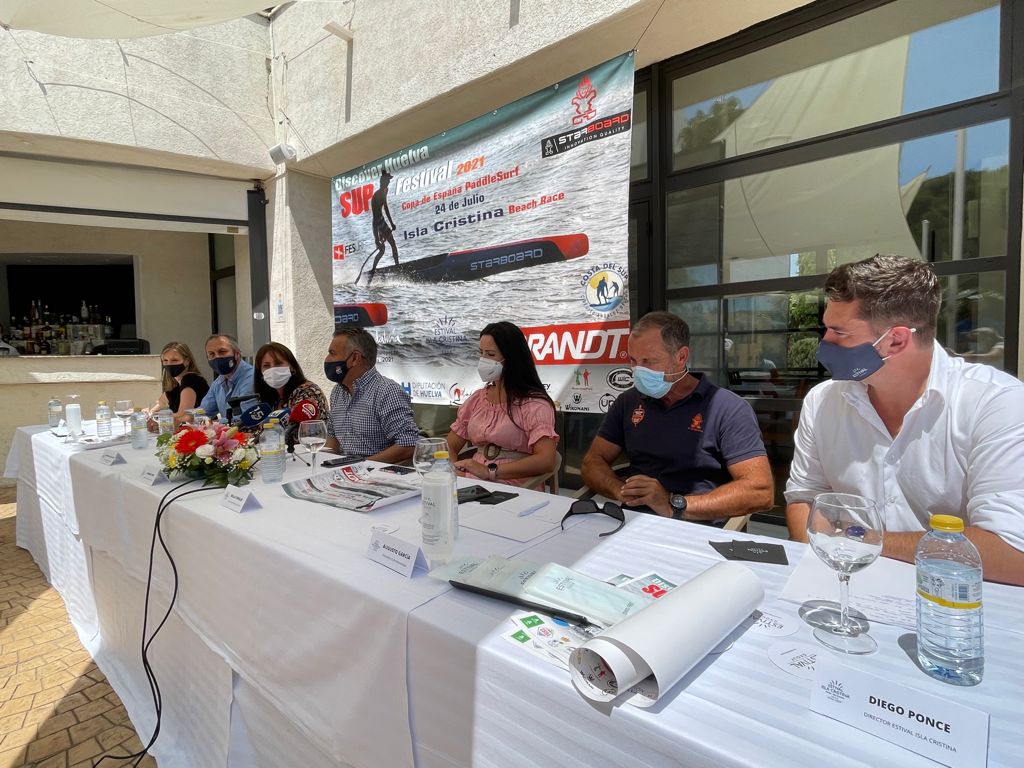 El Hotel Estival Isla Cristina acogía pasado este mediodía la presentación de una nueva edición, la sexta, del Discover SUP Festival -Campeonato de Andalucía de Paddle Surf 2021-, prueba puntuable del Circuito Costa SUP y del Circuito Nacional de Beach Race; una cita organizada por el Club Deportivo de Windsurfing Isla Cristina y la Federación Española de Surf, con la colaboración del Ayuntamiento de Isla Cristina, a través del Servicio Municipal de Deportes, Diputación Provincial y Junta de Andalucía y que tendrá lugar en la Playa Central de la localidad el próximo sábado 24 de julio a partir de las 11.00 de la mañana.