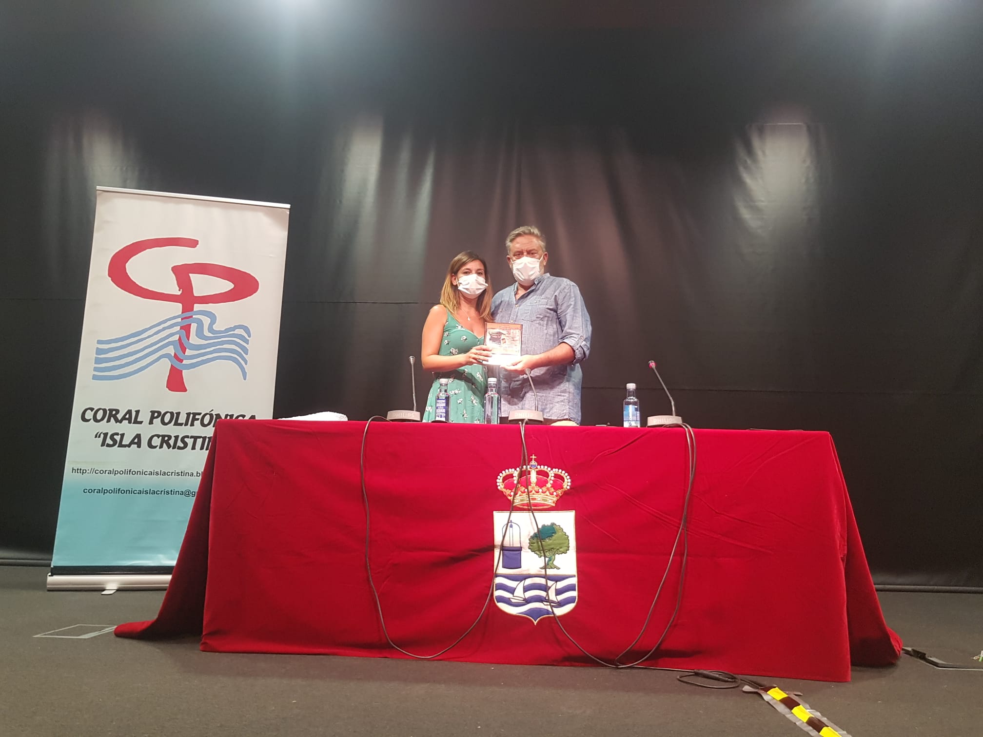La Delegada de Cultura, Ana Vieira intervenía para cerrar este acto haciendo entrega a Enrique Jabares del emblema del Ciclo Cultural y para dirigir unas palabras al público presente en las que mostró su sincero agradecimiento «tanto al ponente en particular, por todos los documentos que nos has mostrado, demostrando que tienes una hemeroteca de la Coral en tu haber que formará ahora parte de la hemeroteca de los Martes Culturales, como la propia Coral Polifónica Isla Cristina, por todos estos años luchando por difundir la tradición vocal isleña y el nombre de nuestro pueblo fuera de nuestras fronteras, y como no, por crear escuela y tradición coral.»