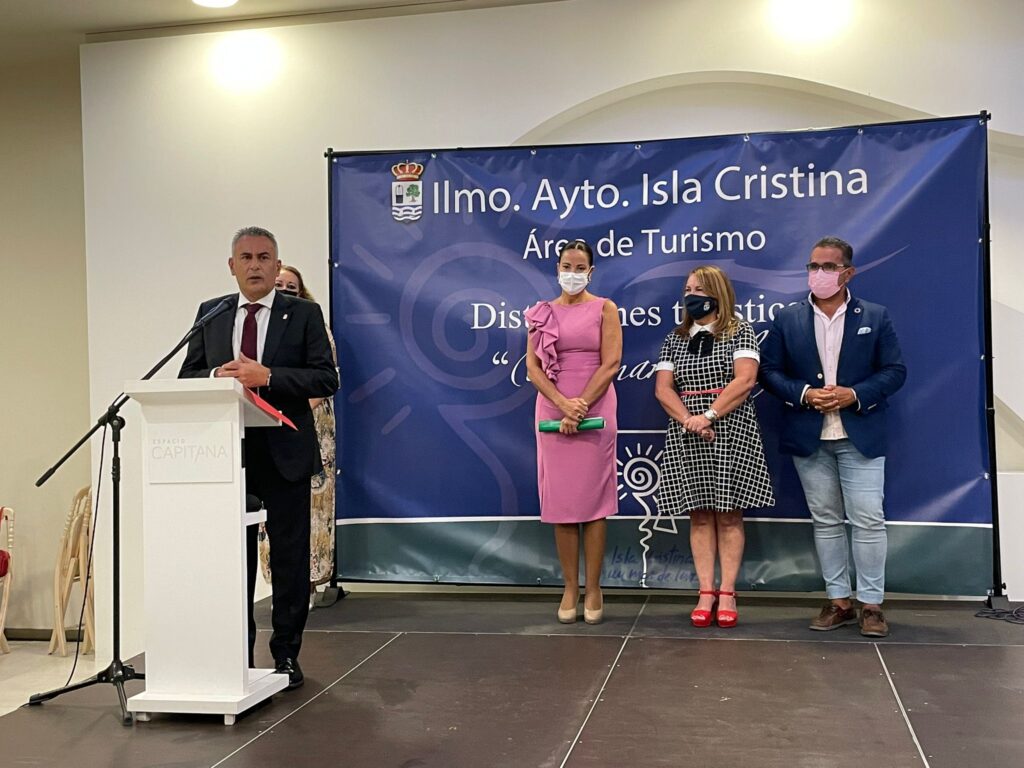 Una vez concluían las intervenciones, se procedía a la entrega de las diversas distinciones, entre ellas a la Trayectoria, que fue para el Camping Giralda, a la Innovación Turística que se le otorgó al Grupo Antílopez y la Distinción ‘Un Mar de Luz’ a la Promoción Turística que se le entregó al Hotel al Hotel Tui Blue Isla Cristina Palace.
