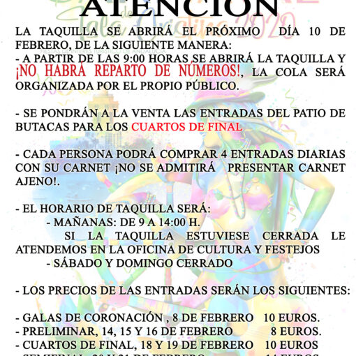 – La presentación del cartel ganador será el día 4 de Diciembre de 2021 en la presentación y elección de las reinas del carnaval 2022.
