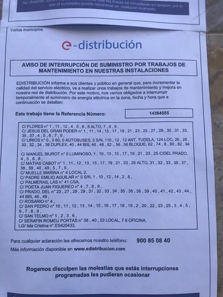 Anuncios EL AYUNTAMIENTO INFORMA SOBRE CORTE EN EL SUMINISTRO ELECTRICO MAÑANA MARTES 25 DE ENERO Publicada 24 enero, 2022 EL CORTE SE PRODUCIRÁ DE 8.00 A 10.00 HORAS Y DE 14.00 A 17.00 EN LAS CALLES QUE INDICAN LAS IMÁGENES