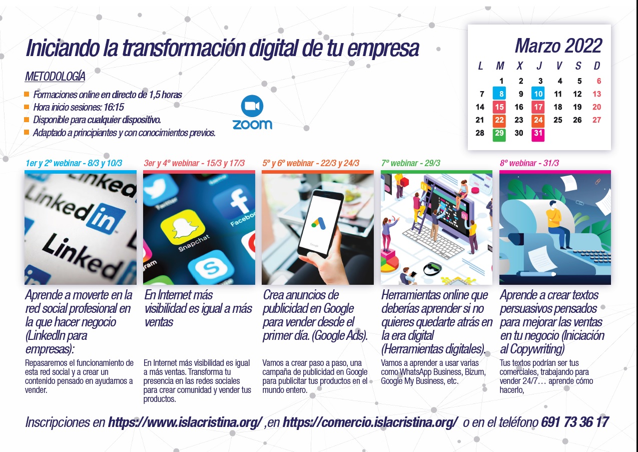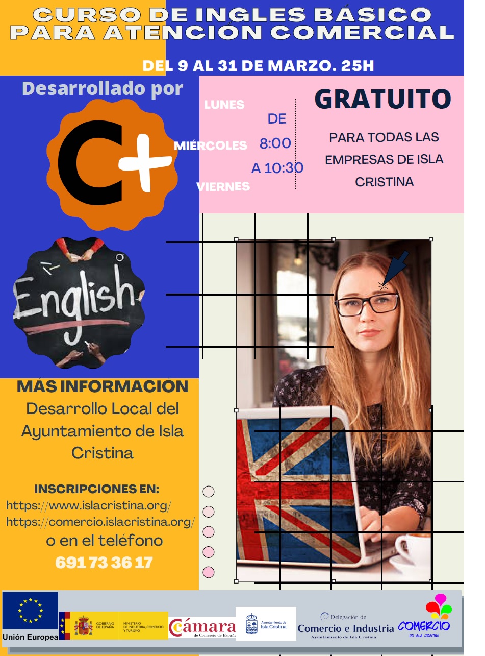 Desde la Delegación de Comercio y Desarrollo Local del Ayuntamiento de Isla Cristina, que dirige la Concejala Ana Belén Barros y coordina la Teniente de Alcalde Montse Márquez, se ponen en marcha una serie de acciones formativas, para empresarios y trabajadores, encaminadas a mejorar la competitividad de nuestras empresas. Para ello, hemos programado cursos de iniciación a la digitalización y de inglés básico de atención al público. Pueden inscribirse en el siguiente enlace: