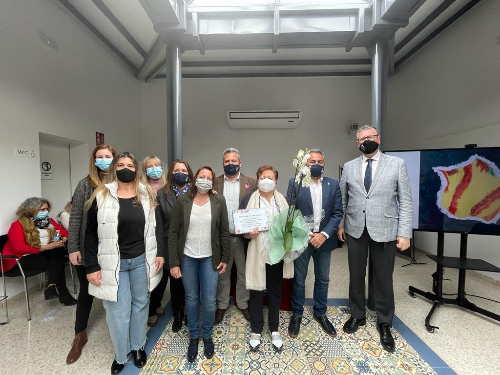 Una vez finalizó la lectura de los poemas, se rendía homenaje a María Peña Beltrán Llagas, compañera del centro que durante cerca de veinte años se encargó de la limpieza del Centro que recibió una placa y un ramo de flores de manos del delegado provincial.