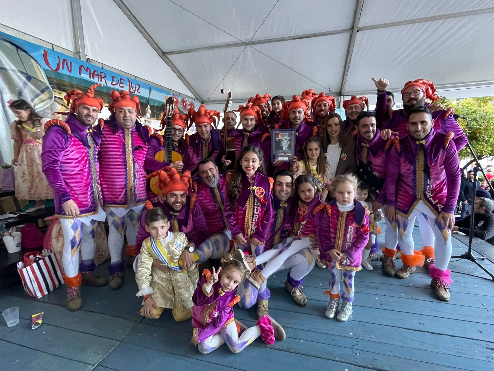 Desde las cuatro de la tarde, un multitudinario público se congregaba en la Plaza para disfrutar de la llegada de los grupos de disfraces y las agrupaciones que han obtenido premios estos carnavales. Conducido por Miguel Gómez ‘Miguelín’, contó con la presencia de la concejala delegada de Festejos, María del Carmen Beltrán, pendiente ésta desde el comienzo de cada detalle del acto y encargada también de entregar algunos de estos premios. Asimismo no faltó las Reina del Carnaval con Corte de Honor, y los Pajes que fueron, como siempre, entregando los diferentes premios, como el del Concurso de Agrupaciones, Cabalgata, Disfraces Callejeros y Miércoles de Ceniza.