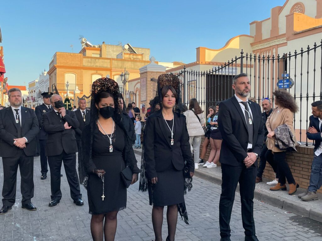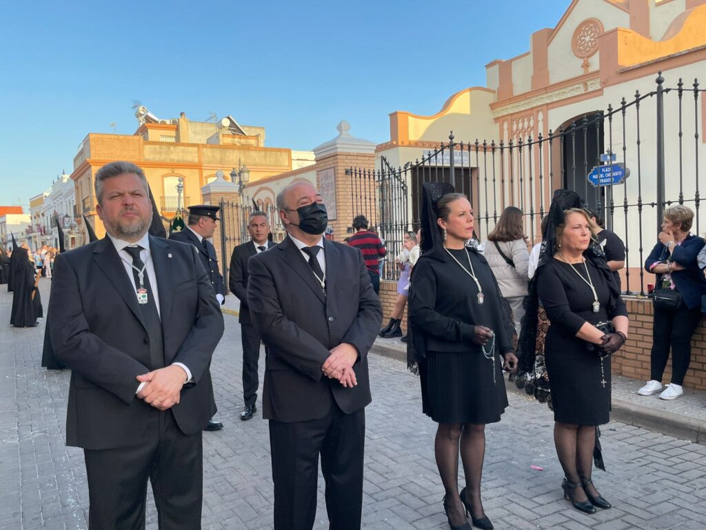Abriendo la procesión, “La Piedad” acompañada de la Banda de Cornetas y Tambores Santísima Trinidad de Palencia y tras ella, el Cristo Yacente antecedido por la Corporación Municipal, encabezada por el Alcalde de Isla Cristina, Jenaro Orta acompañado por el Jefe de Policía Local en Funciones, Serafín Fuentes.
