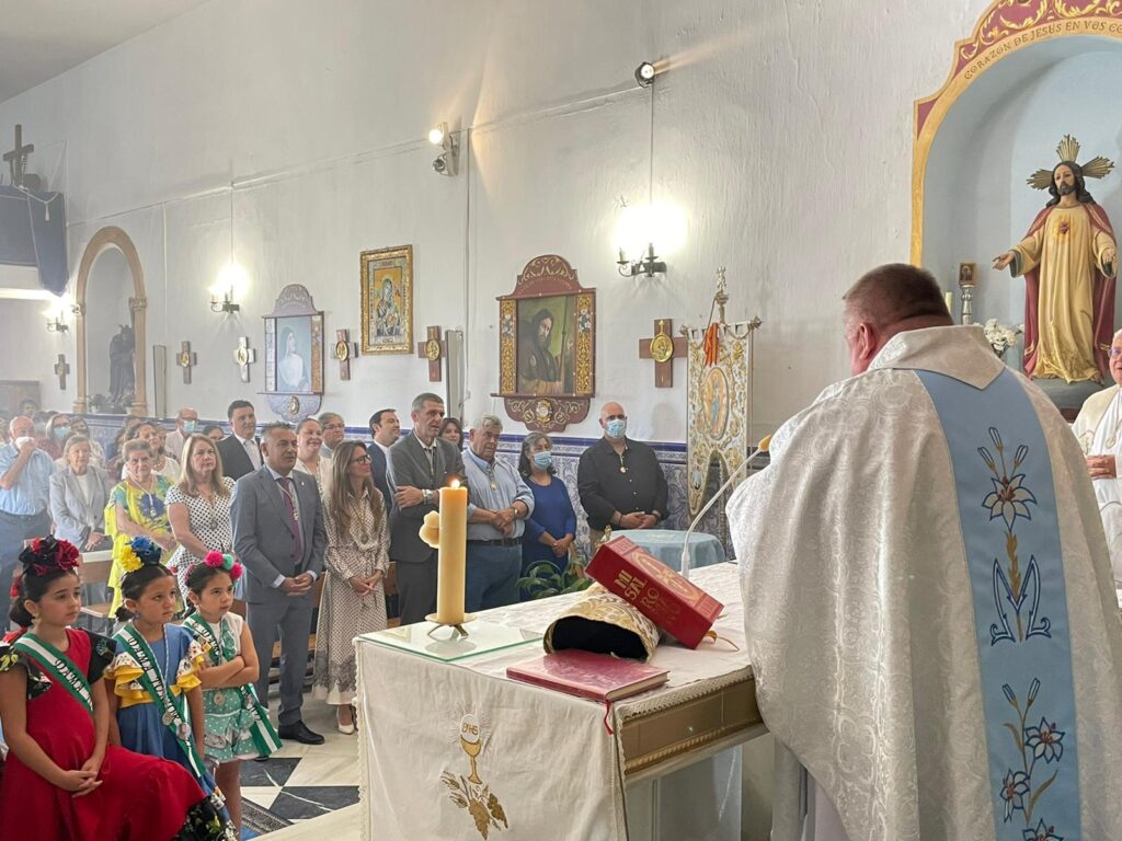 Antes, hacia el mediodía se celebraba la Tradicional Santa Misa en Honor a la Patrona de Pozo del Camino, Barriada cuya gestión comparten los municipios de Isla Cristina y Ayamonte. Esta fue oficiada por el Rvdo. Párroco Gregorio Kosa y cantada por el Coro de la Hermandad de Nuestra Señora del Rocío de Emigrantes y congregó un gran número de fieles y devotos que llenaban la Ermita.