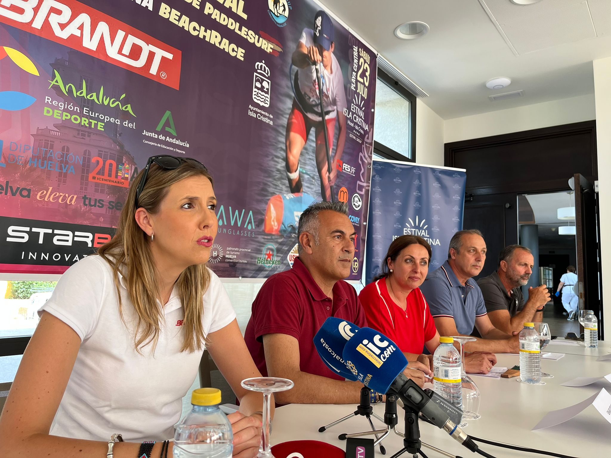 El Hotel Estival Isla Cristina fue el escenario elegido para presentar, ayer, una nueva edición, la séptima, del Discover SUP Festival -Campeonato de Andalucía de Paddle Surf 2022-, prueba puntuable del Circuito Costa SUP y del Circuito Nacional de Beach Race; una cita organizada por el Club Deportivo de Windsurfing Isla Cristina y la Federación Española de Surf, con la colaboración del Ayuntamiento de Isla Cristina, a través del Servicio Municipal de Deportes, Diputación Provincial y Junta de Andalucía y que tendrá lugar en la Playa Central de la localidad mañana sábado 23 de julio a partir de las 11.00 de la mañana.