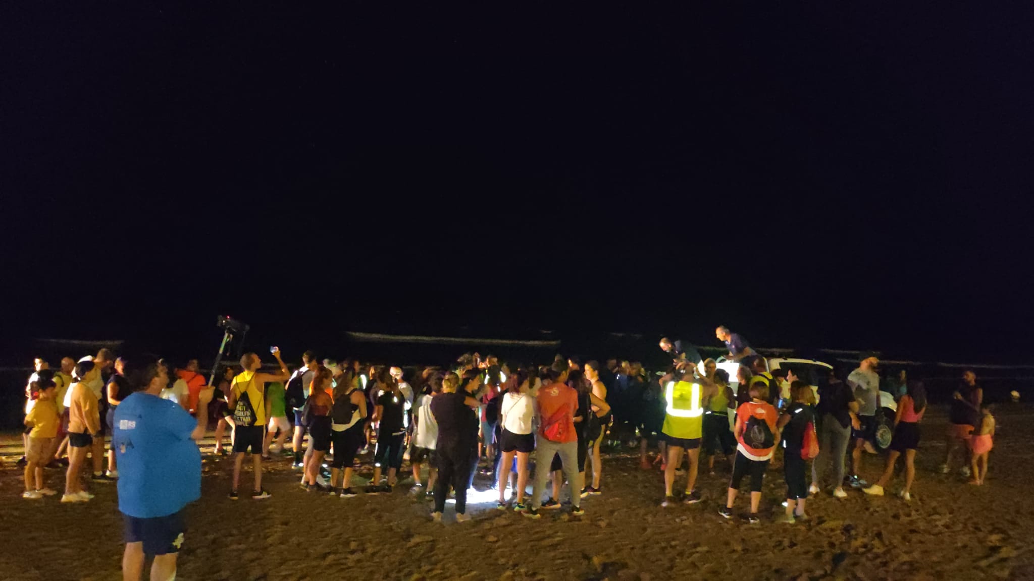 La convocatoria, que tiene como objetivo fomentar la actividad deportiva, en este caso la marcha, y servir de punto de encuentro a los amantes de este tipo de actividad, reunía en esta ocasión más de un centenar de personas de todas las edades, las cuales, se daban cita en el Campo de Fútbol Municipal, de donde partía la ruta, para recorrer los siete kilómetros previsto kilómetros de playas y senderos bajo la luz de la luna.