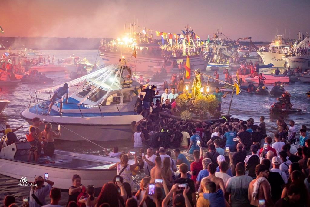 La Barriada de la Punta del Caimán vivía ayer, onomástica de la Virgen del Mar, su día grande, especialmente tras los dos años de espera a causa de la Pandemia en los que su Patrona no pudo salir en procesión a bendecir los hogares de su feligresía y las aguas isleñas.