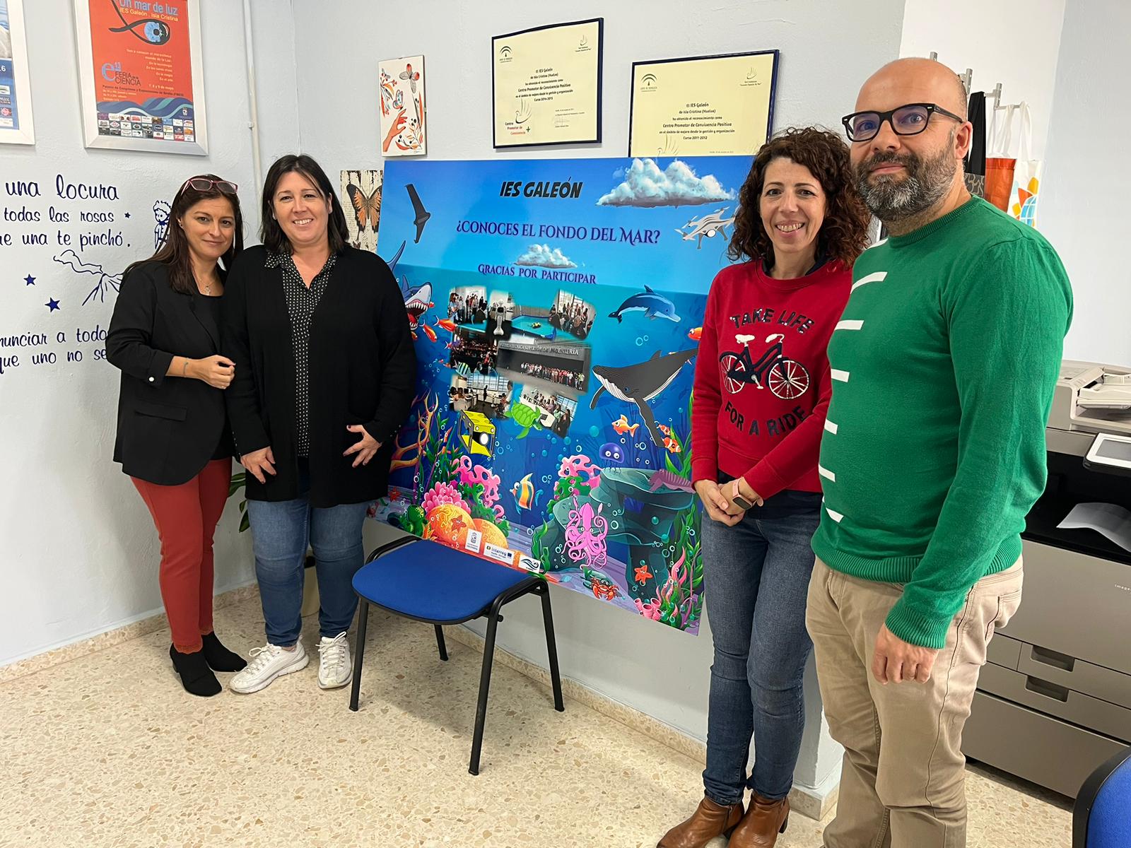 Igualmente durante la segunda quincena de noviembre la concejala delegada de Pesca, Isabel Mª Martínez Ceada y la técnica del Área, Manuela Escobar, han visitado cada uno de los centros escolares del municipio para hacerles entrega de un glaspack o vinilo que refleja «su colaboración y participación» en la exposición de sensibilización que tuvo lugar en el Garum el pasado año y que servirá de recordatorio de esta participación en este proyecto.
