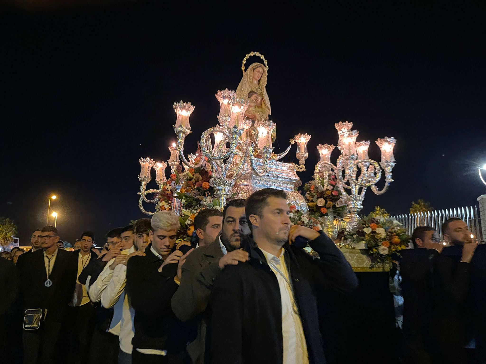 A las nueve de la noche se abrían las puertas de la Parroquia de la Virgen del Mar de donde partía la Procesión Extraordinaria de la Patrona de la Barriada de la Punta del Caimán con motivo del 50 Aniversario de dicha parroquia y que se celebra estos días con distintas citas religiosas y culturales.