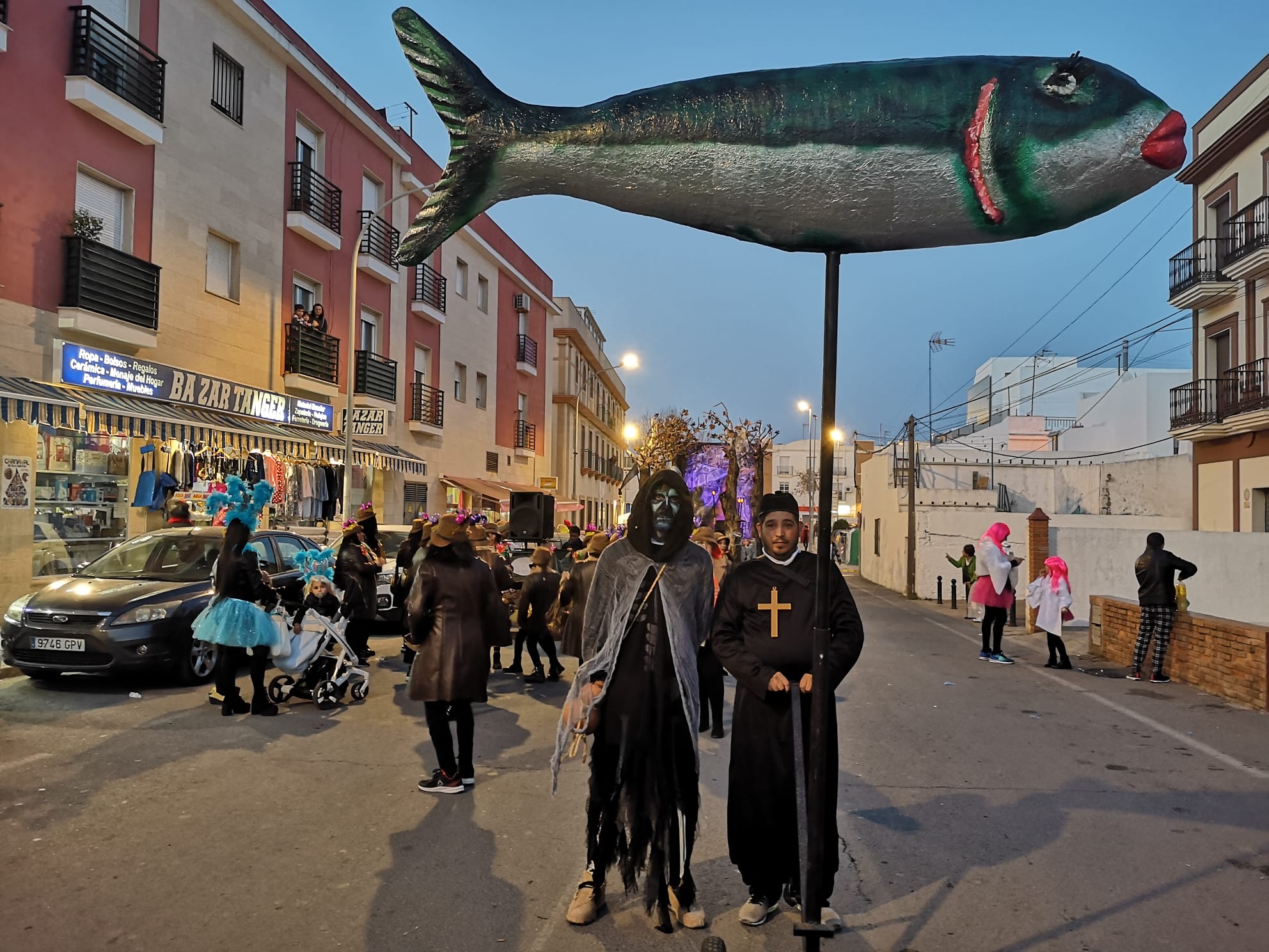 Así, este esperado día comenzaba desde bien temprano cuando, como suele ser habitual y tradicional, los miembros de la Asociación salían con el carro fúnebre que porta la Sardina en duelo por las calles isleñas.