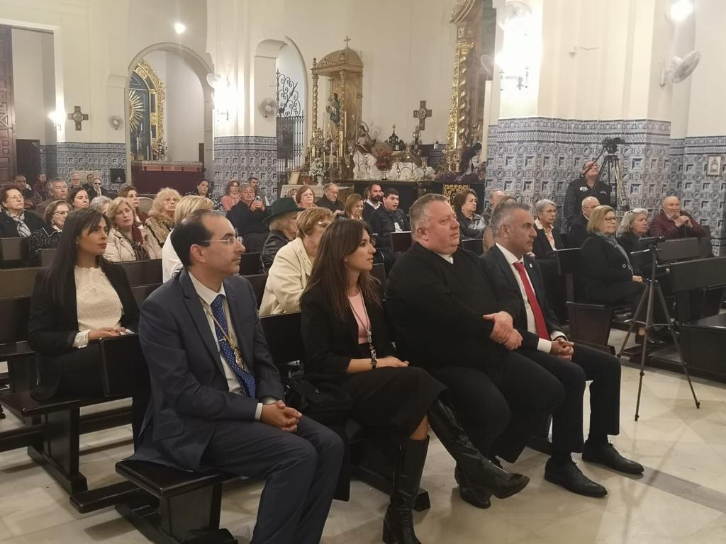 Junto al numeroso público que llenó los bancos del Templo asistió, en representación del Ayuntamiento, el alcalde, Jenaro Orta acompañado por la concejala delegada de Cultura, Ana Vieira. Asimismo se encontraban presentes el Rvdo. Párroco, Gregorio Koza y el presidente del Consejo de Hermandades, Javier Castro Medero.