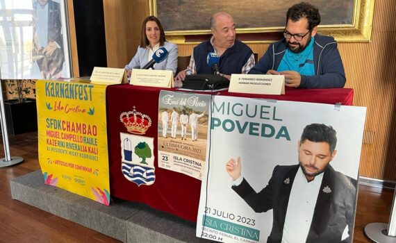 Las actuaciones han sido presentadas hoypor la delegación municipal de Festejosy la promotora […] Festejos MIGUEL POVEDA, CHAMBAO, MIGUEL CAMPELLO O ECOS DEL ROCÍO ACTUARÁN EN ISLA CRISTINA ESTE PRÓXIMO VERANO