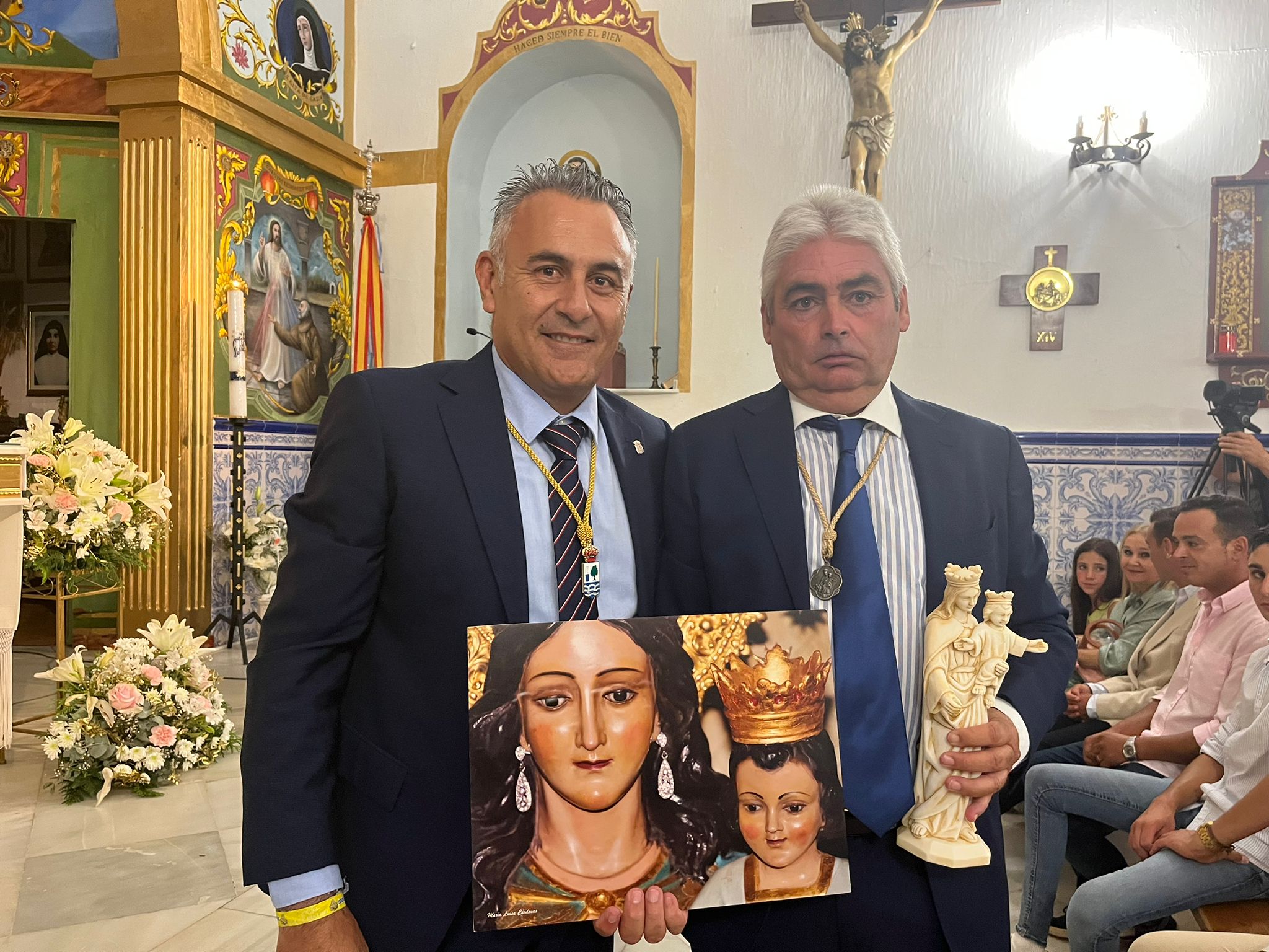 La declamación corrió a cargo de José Antonio Jiménez Méndez, que fue presentado por Alfonso Manuel Rodríguez y, en representación del Ayuntamiento de Isla Cristina asistió el alcalde, Jenaro Orta, que dirigió unas cariñosas palabras al pregonero, al que conoce desde la infancia, acompañado por el edil Gerardo Ramos. Asimismo se encontraban presentes los miembros de la Archicofradía de María Auxiliadora, presidida por José Manuel Fernández y muchos fieles y devotos de esta Advocación que no quisieron perderse este pregón presidido por el Rvdo. Párroco Gregorio Koza.