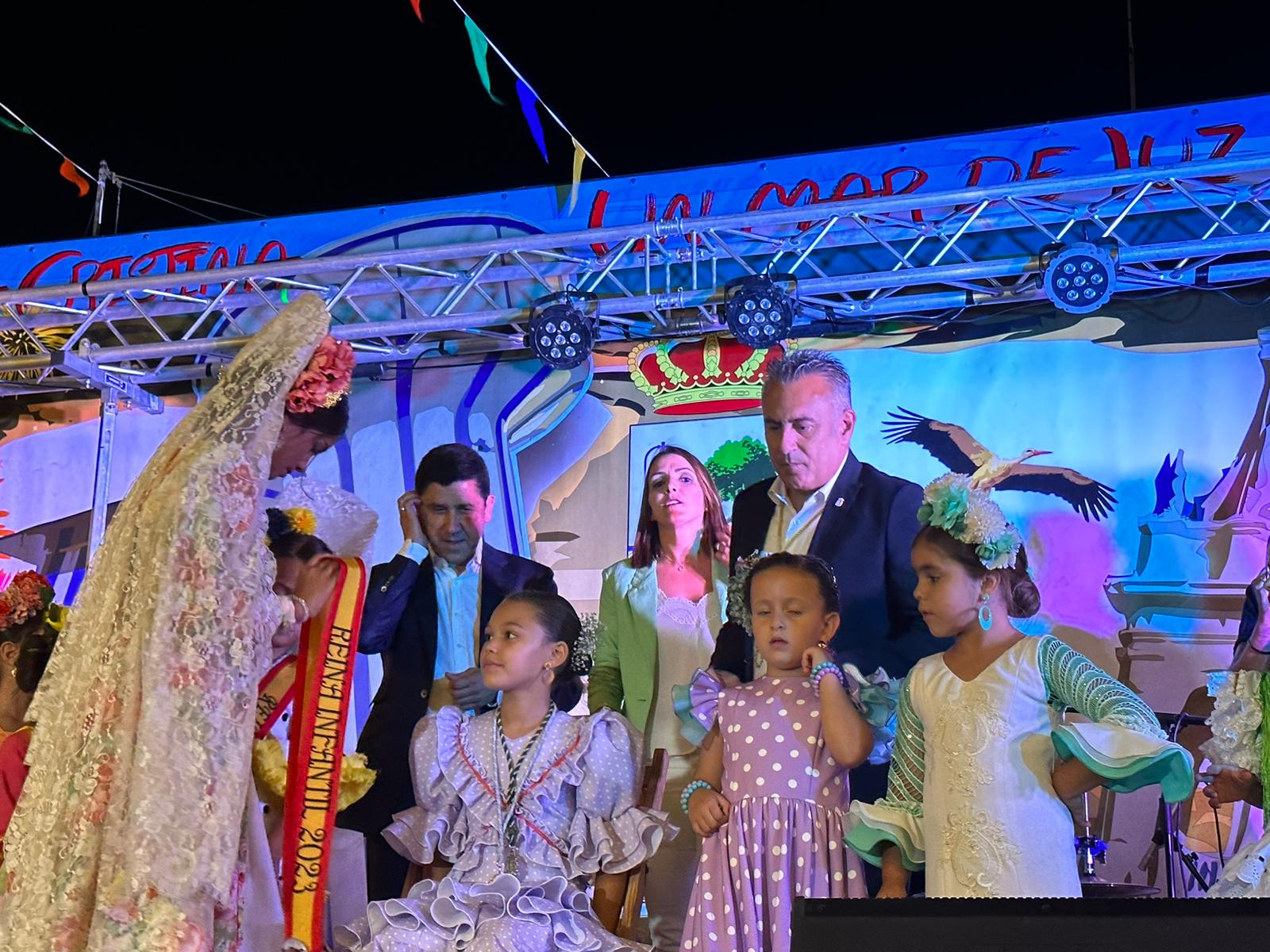 En representación de ambos Ayuntamientos estuvieron el alcalde de Isla Cristina, Jenaro Orta y el alcalde de Ayamonte, Alberto Fernández, acompañados por una amplia representación de ambas Corporaciones Municipales, y que fueron los encargados de imponer las respectivas mantillas a las Reinas junto a las ediles, María del Carmen Beltrán (Isla Cristina) y Rosana Porto (Ayamonte) y las Reinas salientes, Rocío Orta, Reina Juvenil; Candela de la Luz Arias y Ruth Herrero, Reinas Junior e Infantil, respectivamente, ya que cabe recordar que el año pasado fueron tres las Reinas de las Fiestas.