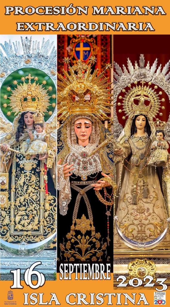 La procesión tendrá lugar el próximo 16 de septiembre y tendrá una duración de tres horas aproximadamente, teniendo su salida a las 21.00 horas. La imágenes irán ordenadas por antigüedad, siendo la primera la Virgen del Carmen, que llegó a la parroquia en 1863 seguida por la Virgen del Rosario, que recibe culto desde 1789 y la Virgen de los Dolores, como primera devoción de Isla Cristina y como titular del Templo, que recibe culto desde 1757.