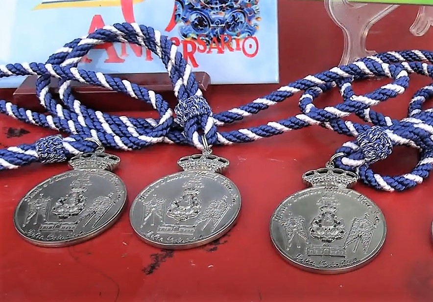 En este acto se presentaron también una serie de recuerdos conmemorativos de esta efemérides como balconeras alusivas a la misma y una serie de objetos cerámicos que se pondrán a la venta a un precio simbólico para que todo el que quiera pueda adquirir estos objetos en recuerdo a esta importante fecha, así como una medalla Conmemorativa del L Aniversario, con un diseño especial y que sale con el cordón azul, que es el color que llevó en su fundación y que también podrá adquirirse a través de la Hermandad.