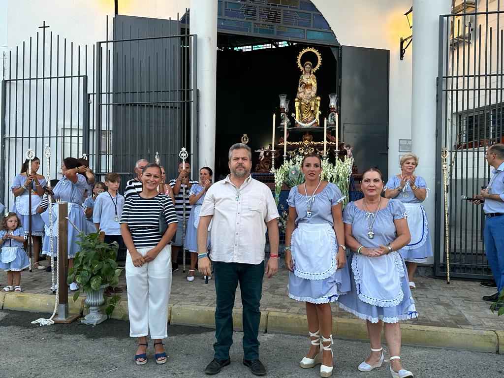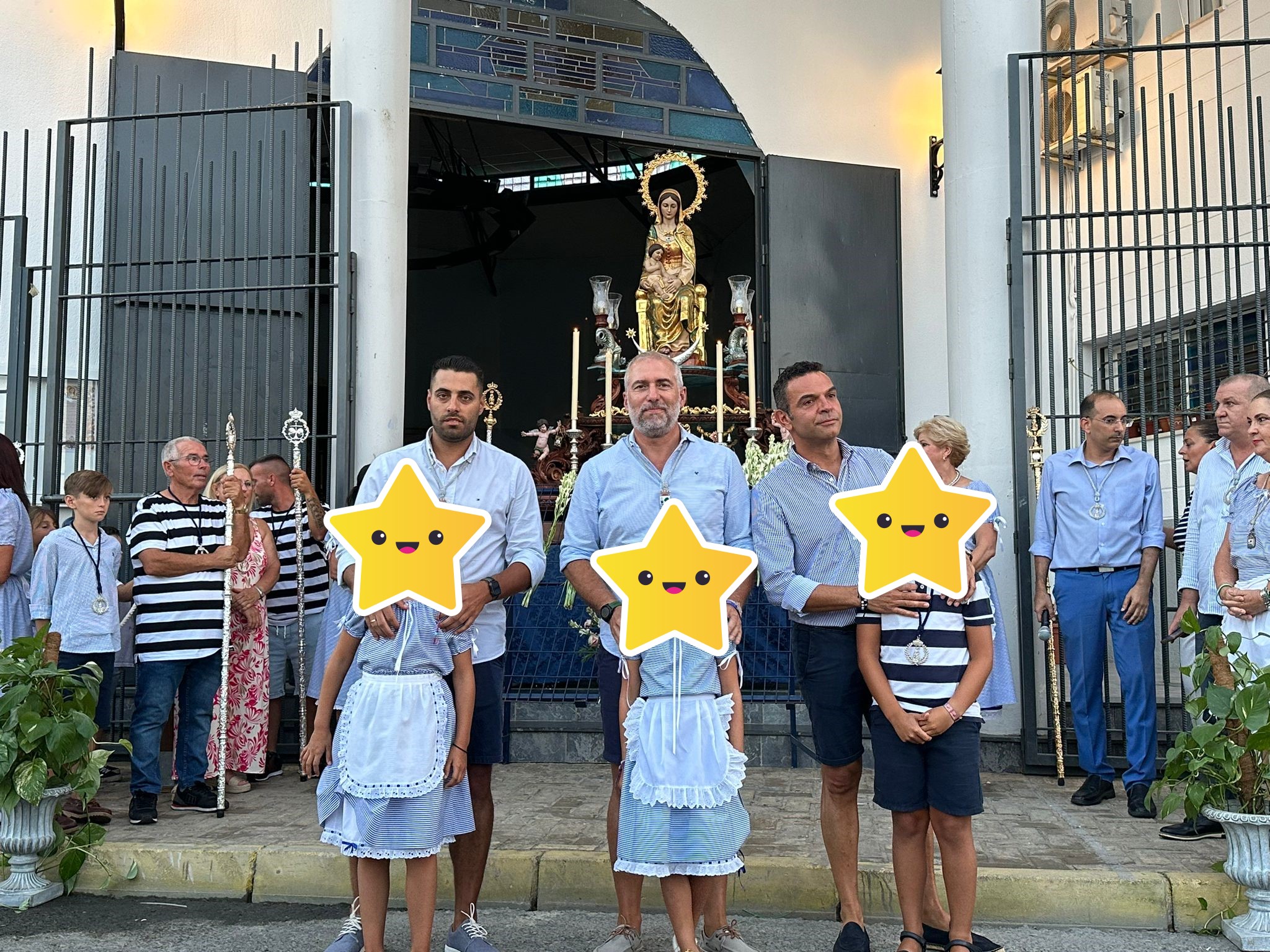 La comitiva partió de la calle Ramón Noya, junto a la Capillita de la Virgen desde donde salía para recorrer las principales calles de la barriada hasta llegar al pórtico de la iglesia donde esperaba la imagen a las puertas de su Parroquia y a cuyas plantas iban depositando los ramos de nardos cientos de personas a ataviadas, según la tradición, con el traje típico marinero.