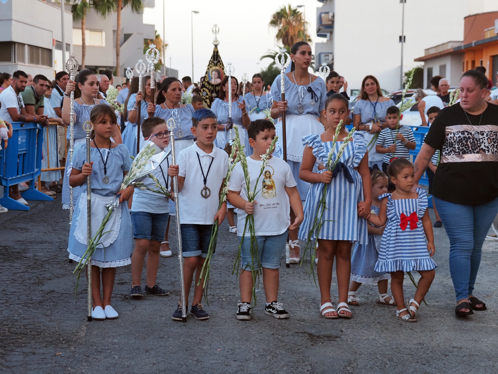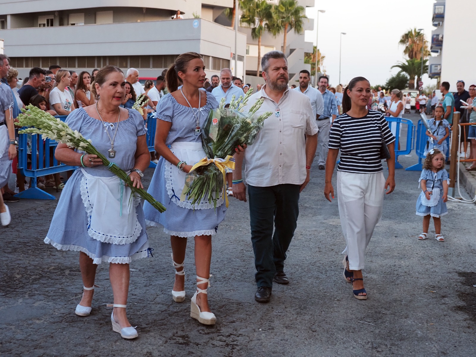 Cientos de isleños han participado este año en la Tradicional Ofrenda de Nardos a la Virgen del Mar, uno de los actos más multitudinarios y esperados de las Fiestas de Punta del Caimán.