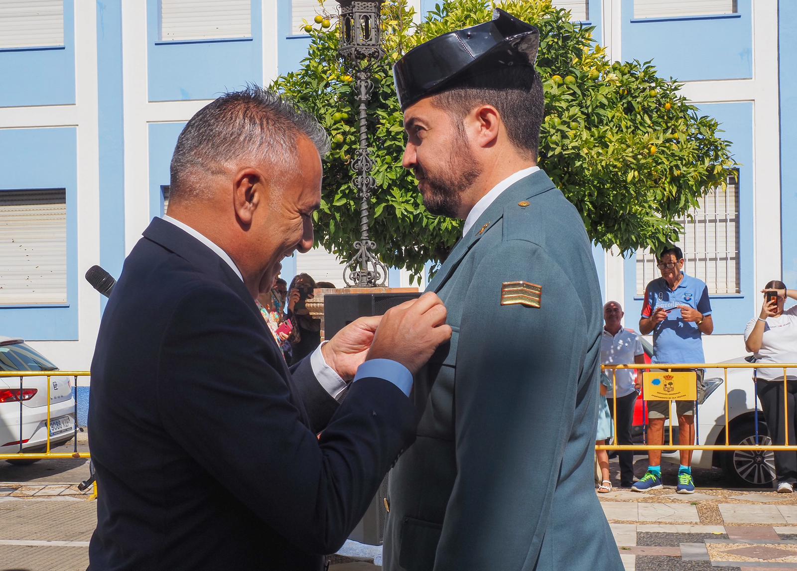 Tras el solemne acto de izado de la Enseña Nacional, se procedía a la imposición de las Condecoraciones a los Guardias Civiles de la Unidad Isleña por el alcalde de Isla Cristina, Jenaro Orta. En esta ocasión se procedió a la imposición de la Cruz de la Orden del Mérito de la Guardia Civil, con distintivo Blanco, al agente Sebastián Marcos Jiménez a quien felicitó en nombre de todo el pueblo isleño.