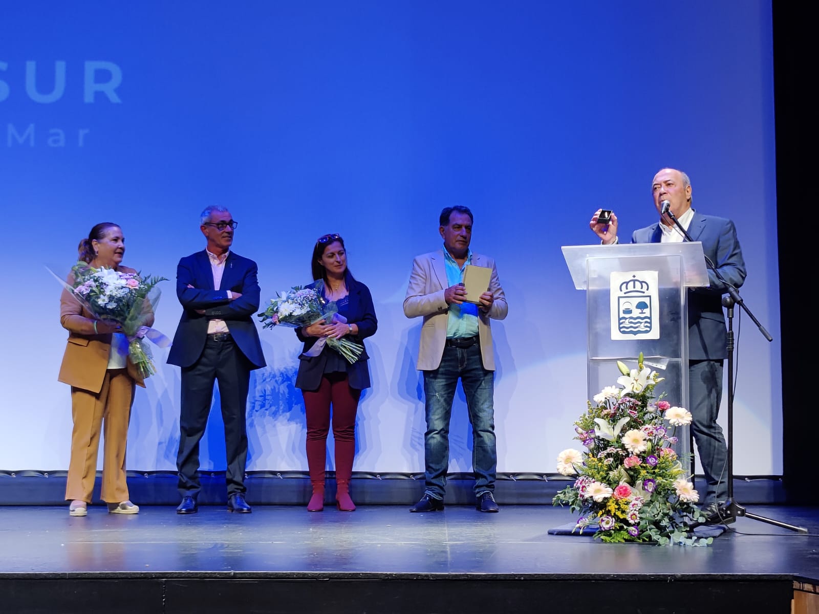 Recibieron placas los colaboradores, medios de comunicación, ponentes, miembros colaboradores de Asprocasur, la concejala de Pesca, Isabel María Martínez Ceada y la concejala de Educación, María del Carmen Beltrán, que recogió Isabel López en su nombre, así como el Ayuntamiento al que se le concedió «La Caballa de Oro», que recogió el primer teniente de alcalde.