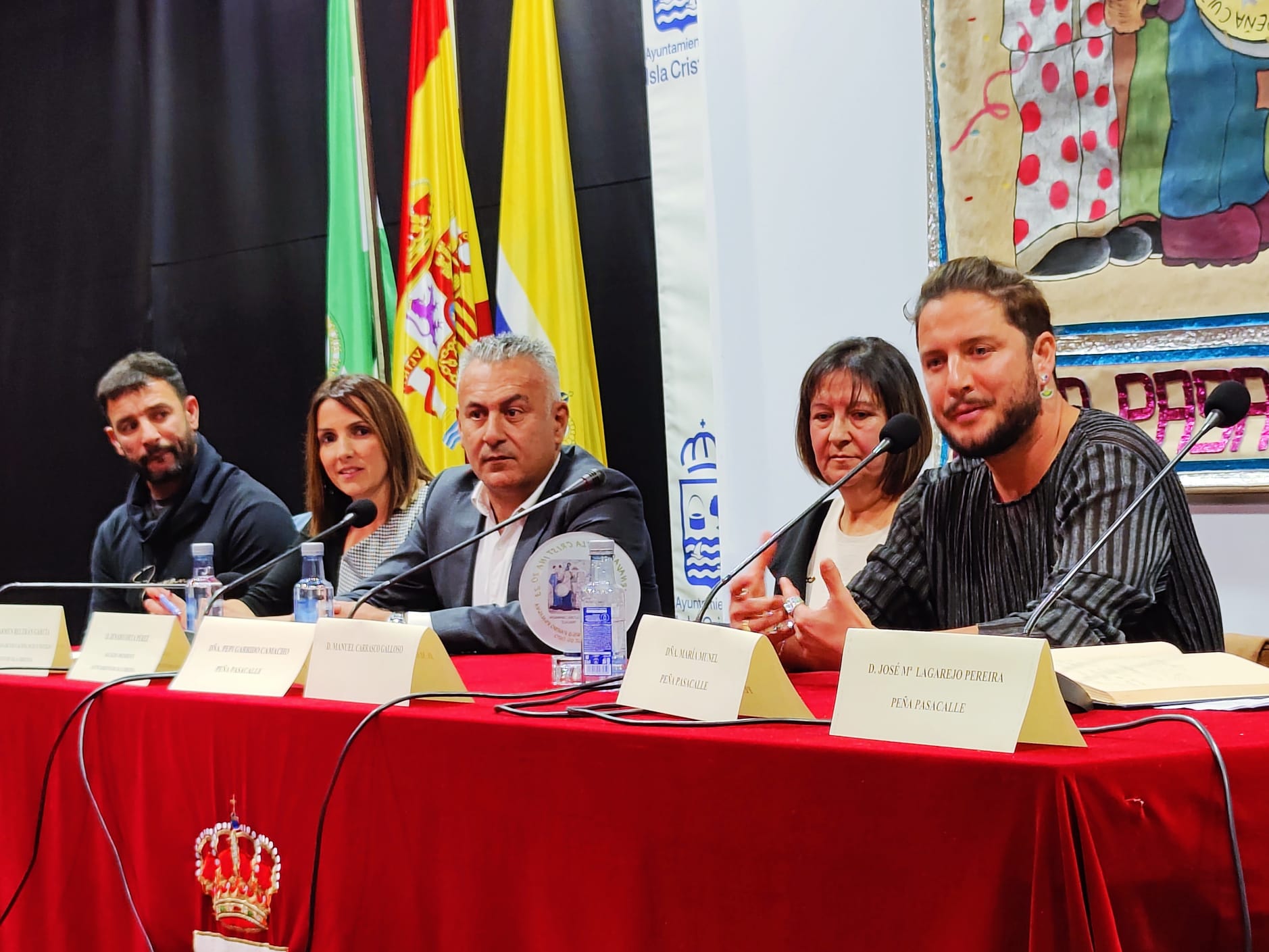 El Salón de Actos del CIT Garum fue el escenario elegido por la Peña Carnavalera Pasacalles para hacer entrega, casi un año más tarde, de su máximo galardón, el Juan Andrés Pardo Penalva en su categoría de Antifaz de Oro y que recibía un isleño internacional, el cantante Manuel Carrasco.