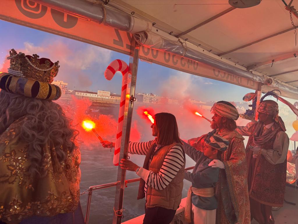 En puerto les esperaba una amplia representación institucional para recibirles y desearles un buen recorrido por las calles, así como y a toda Isla Cristina, una feliz noche de Reyes. Entre los presentes, el alcalde Jenaro Orta, la concejala delegada de Festejos, María del Carmen Beltrán y las tenientes de alcalde, Isabel López e Isabel María Martínez Ceada.
