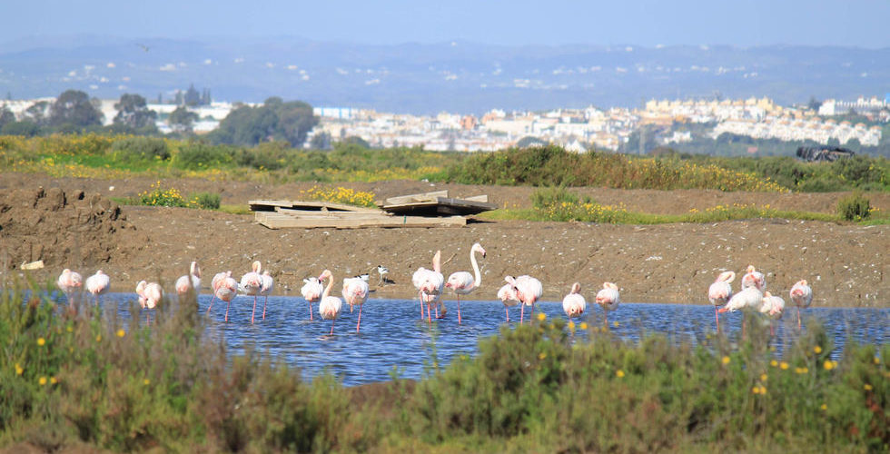 Junto a la antigua Vía Verde Litoral se encuentra un Mirador de Aves, con zona de aparcamiento y señalizado desde la carretera. A través de códigos QR se pueden consultar la flora y fauna de la zona, como cigüeñas, flamencos o espátulas, y así hasta una veintena de especies. En el apartado de flora, abundan los pinos piñoneros o la sabina negra, un arbusto endémico que solo está presente en Huelva y Cádiz.